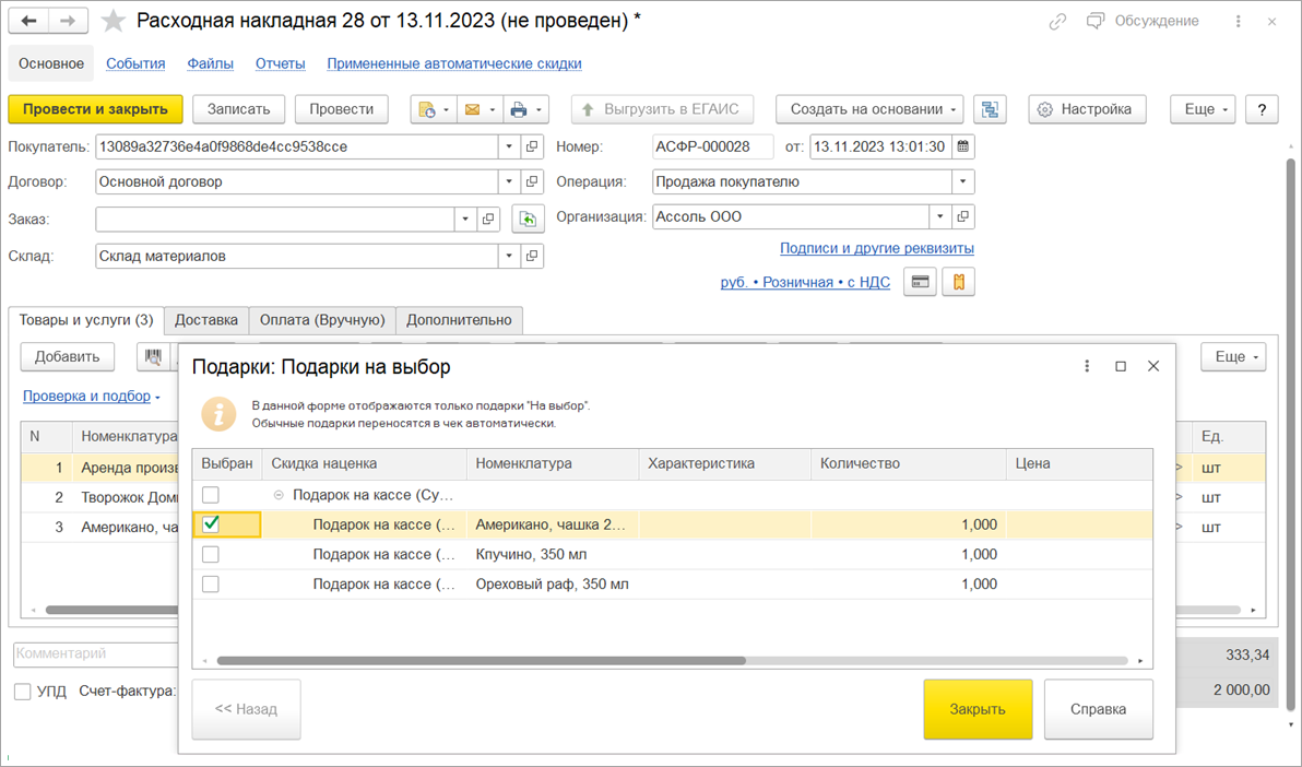 Работать с подарками "на выбор" теперь удобнее. Выбранные подарки сохраняются при пересчете скидок.