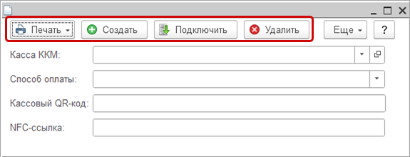 В новую форму добавлены команды печати QR-кода с выбором печатной формы, подключения, создания, удаления.