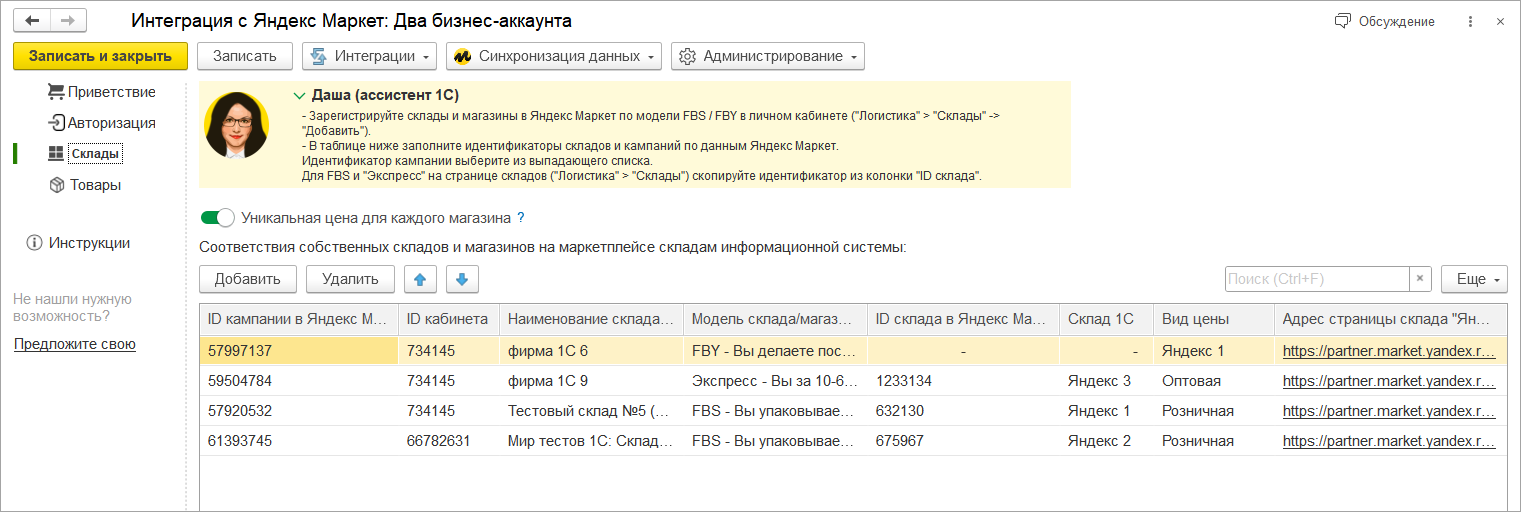 Добавили возможность передавать цены товаров на Яндекс Маркет по магазинам или кабинетам. При настройке интеграции можно выбрать уникальные цены для каждого отдельного магазина или кампании, созданной в кабинете Яндекс Маркета.