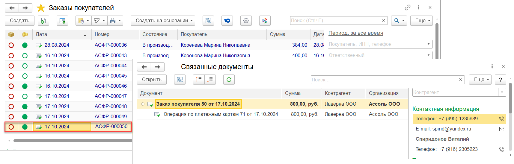 Становится проще работать со связанными документами. Теперь в списке для заказов покупателя и заказ-нарядов можно видеть его состояние: проведен, не проведен, удален.