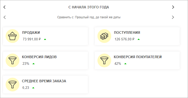 Показатели конверсии подскажут процент конверсии лидов, покупателей и заказов.