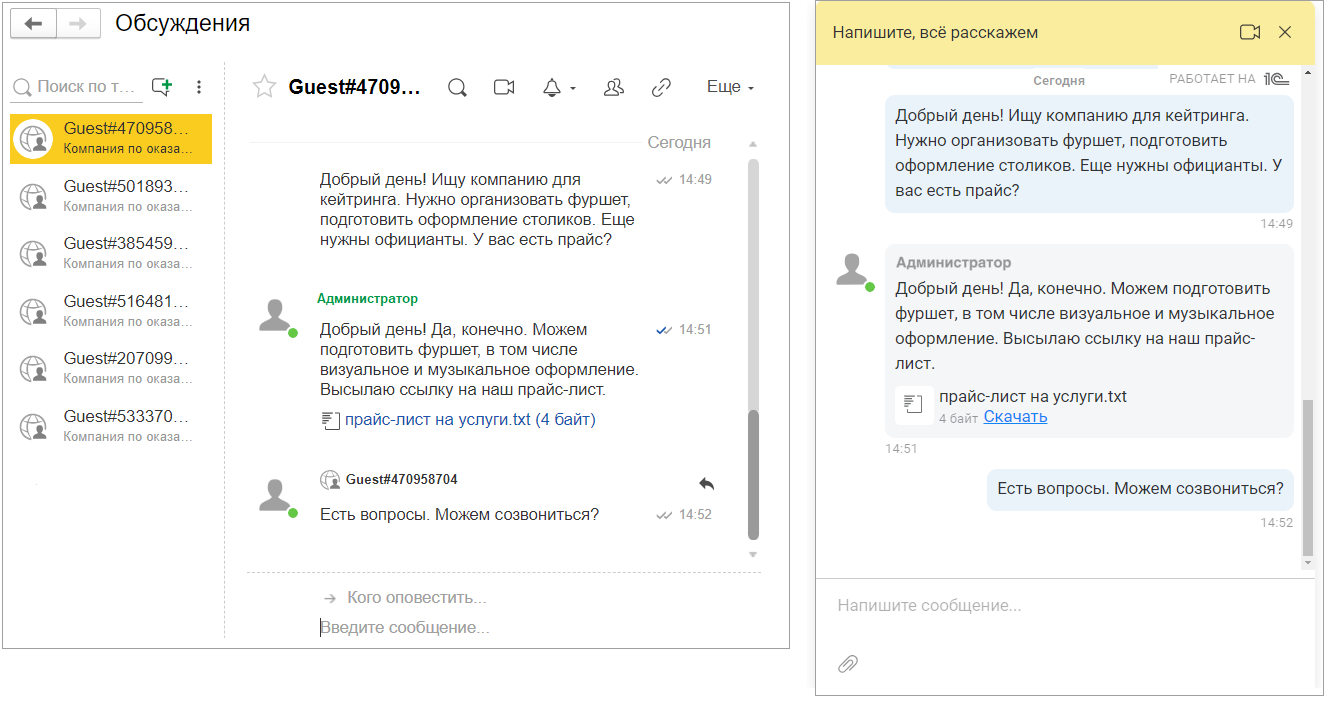 Подробнее о настройке интеграции с чатом на сайте можно прочитать в статье.