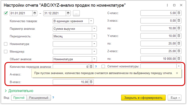 Упростили расчет в отчете: количество периодов по умолчанию рассчитывается исходя из периода и периодичности.