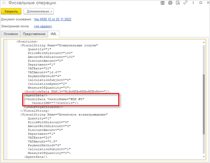 Передача основания в документе Чек ККМ на возврат