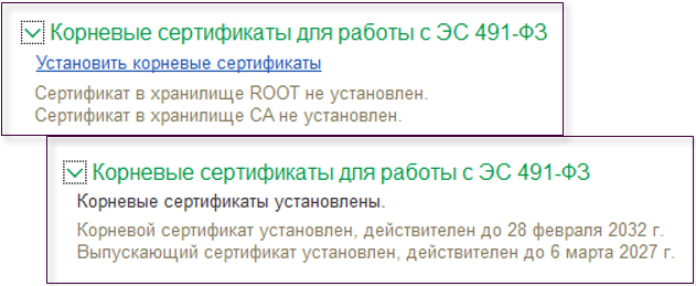 Для упрощения работы с ЭС (ФЗ-491) добавлена возможность автоматической установки корневых сертификатов Национального удостоверяющего центра в хранилище доверенных корневых сертификатов непосредственно из программы. Для установленных сертификатов будет отображаться срок их действия.