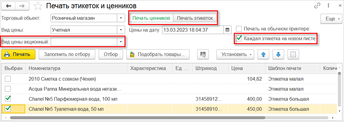 Печать этикеток и ценников