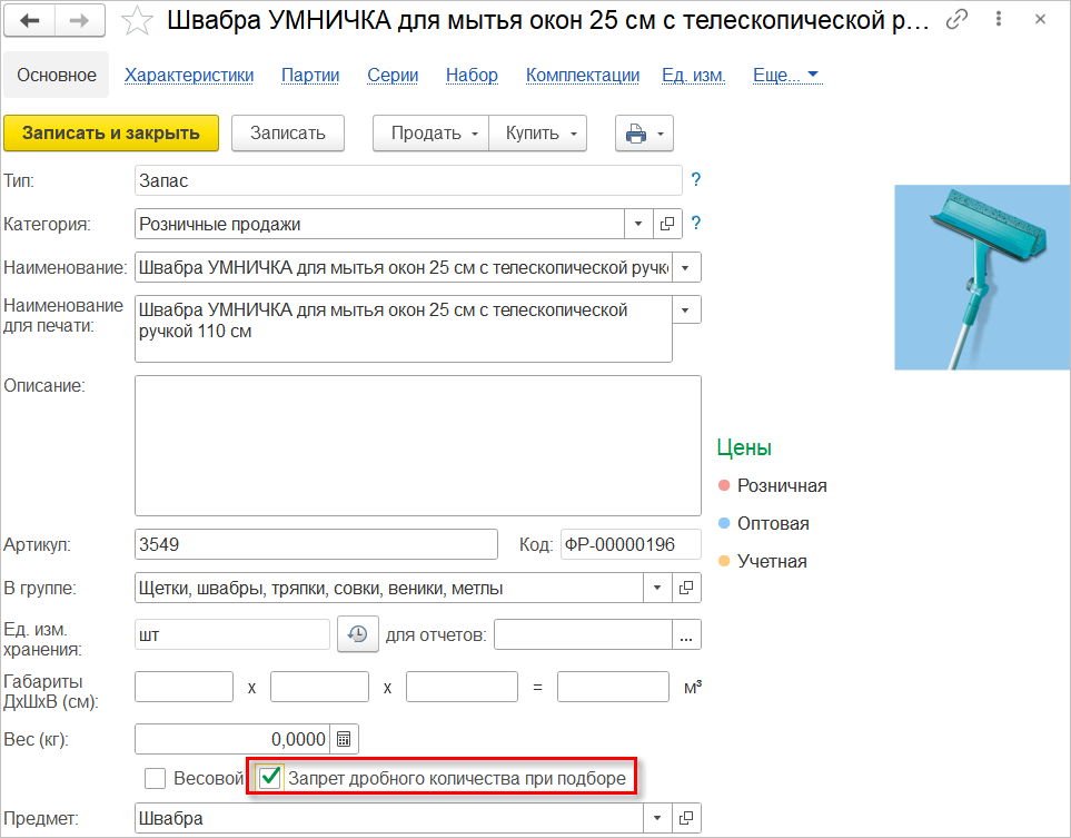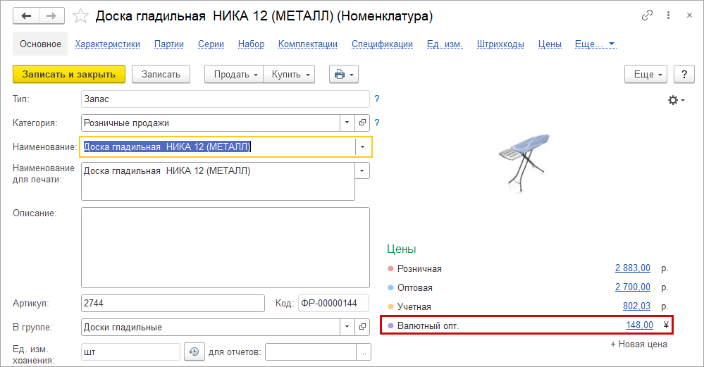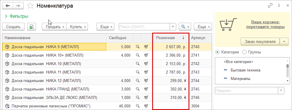 Понятные цены в карточке номенклатуры