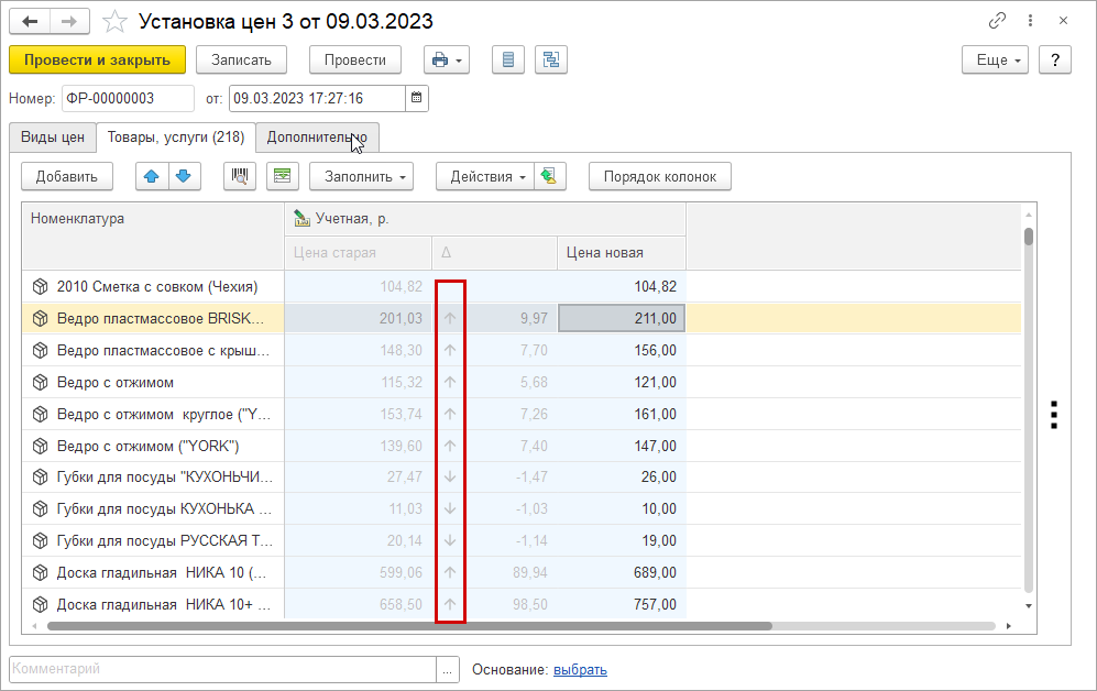 Увеличение или уменьшение цен стало легко увидеть и проанализировать в документе "Установка цен".