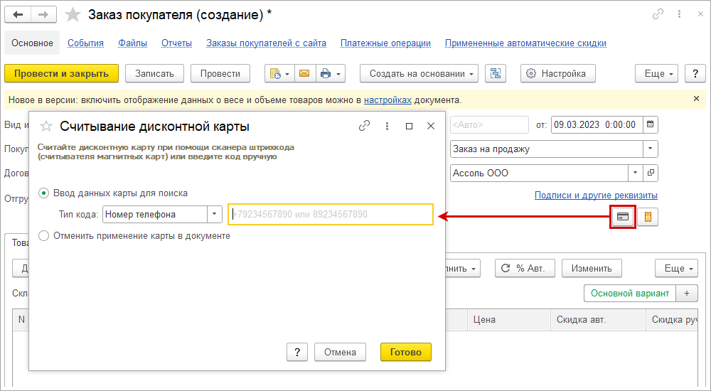Улучшили работу с дисконтными картами в документах. Теперь найти дисконтную карту можно по номеру телефона покупателя. Скидки стали доступны покупателям, даже если они забыли дисконтную карту дома.