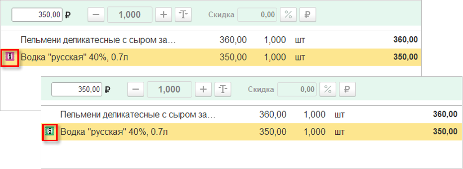 Применить управляемые скидки можно только для товаров с неуказанным заказом. Поэтому в документе, созданном на основании заказа, управлять скидками нельзя. Исключение составляет реализация сверх заказа. При переключении показывать заказы в табличной части вместо шапки в товарах сверх заказа номер не указан. Появляется возможность активировать управляемые скидки, действующие на строку.
