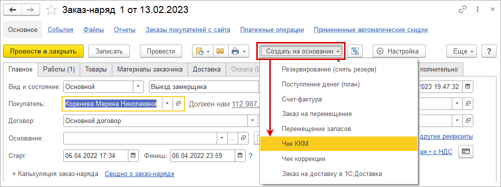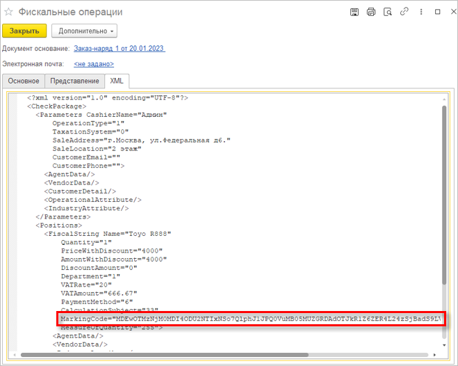 Работа с маркировкой в документе "Заказ-наряд"
