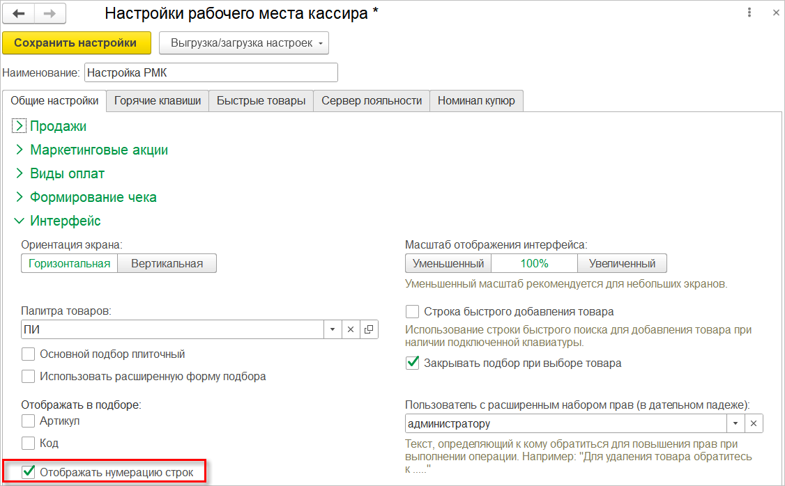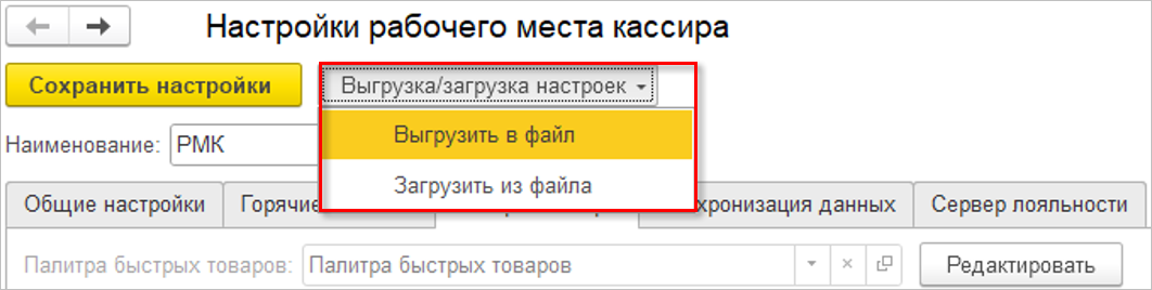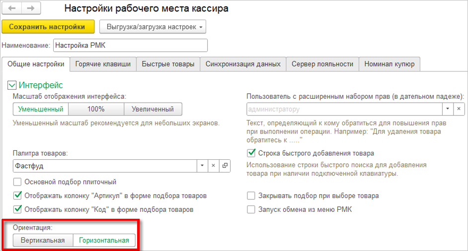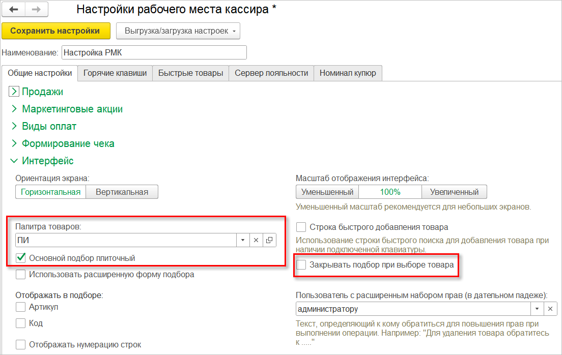 Если палитра товаров не выбрана и при этом добавить элементы быстрых товаров, то при сохранении настройки РМК произойдет создание новой палитры с этими элементами.