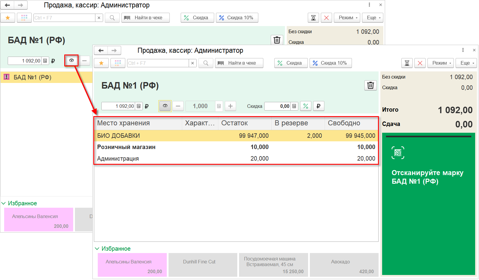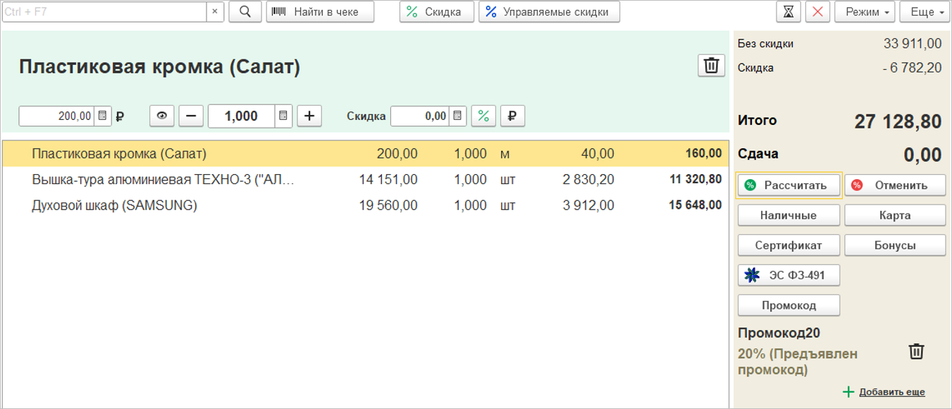 Появилась возможность при продаже в розницу и оптом управлять автоматической скидкой. Например, можно применить специальный вид цен на уцененные товары или выдать подарок покупателю с ребенком. Применить автоматическую скидку можно и к определенному товару. У кассира появляется больше возможностей для взаимодействия с покупателем с целью повышения его лояльности.