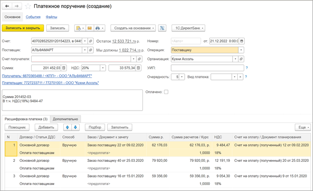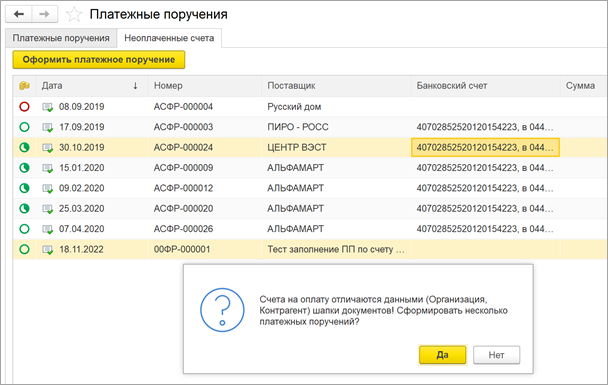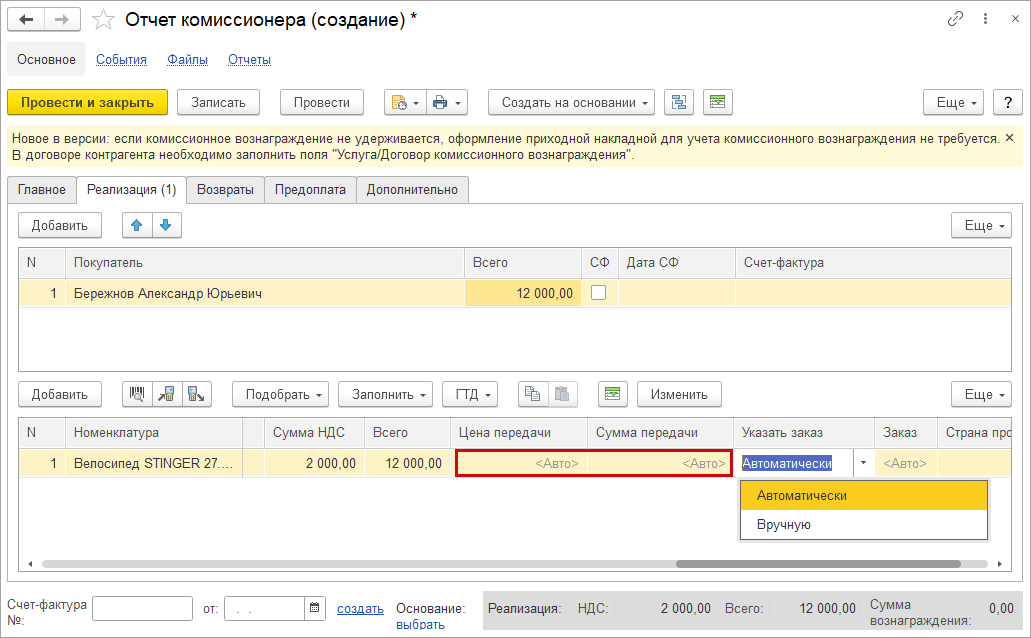 Создание счетов-фактур при формировании документов из маршрутного листа