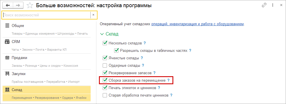 Обмен с 1С:БП становится более гибким для настройки. Появилась возможность исключать перемещения запасов между складами из обмена, а также выгружать на один склад, независимо от флажка использования складов в табличных частях документов.
