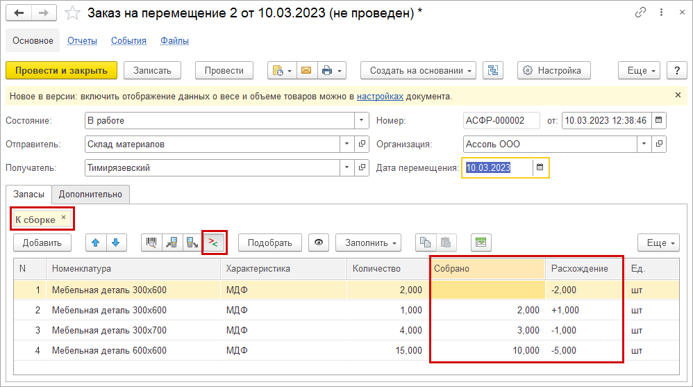 Новая возможность позволит кладовщикам отражать в мобильном 1С:Кладовщик неполную сборку и расхождения при приемке перемещения, а затем выгружать эту информацию в учетную систему 1С.