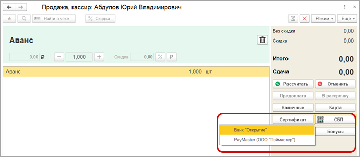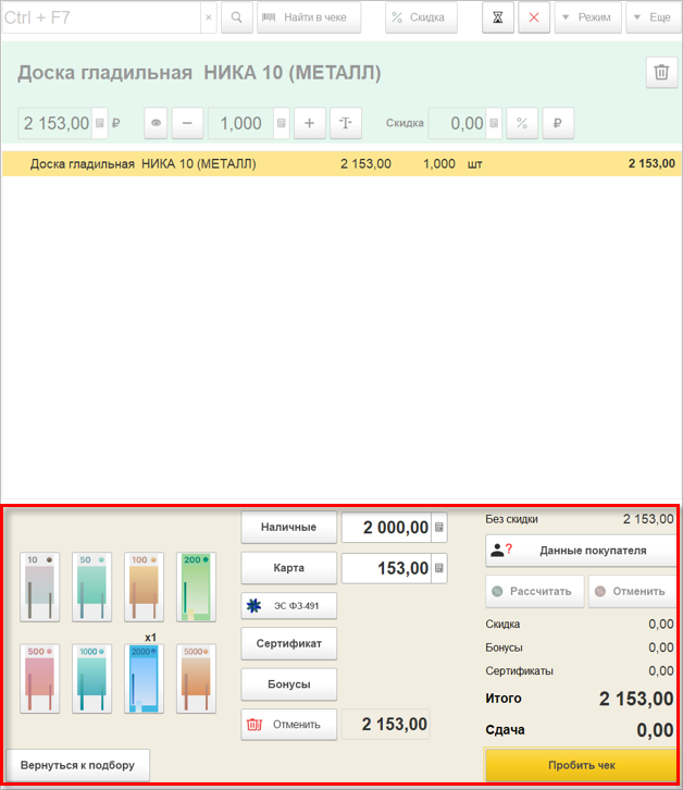 Рабочее место кассира (РМК)