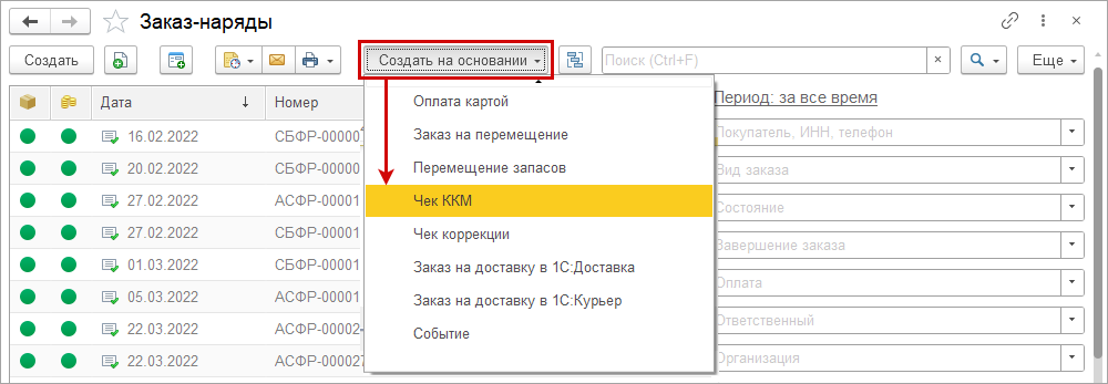 Добавили правую панель в список документов, открываемый из карточки номенклатуры, контрагента, договора, проекта. Теперь можно быстро и удобно настроить фильтр в списке документов по периоду, организации, контрагенту и договору.