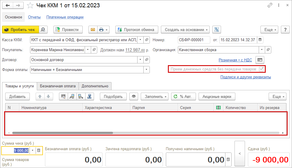 Теперь контроль указания кодов маркировки при пробитии чека на возврат осуществляется при подготовке данных для пробития чека. Это ускорит время выполнения операции, так как и проверка и подготовка данных для пробития формируются одним вызовом.