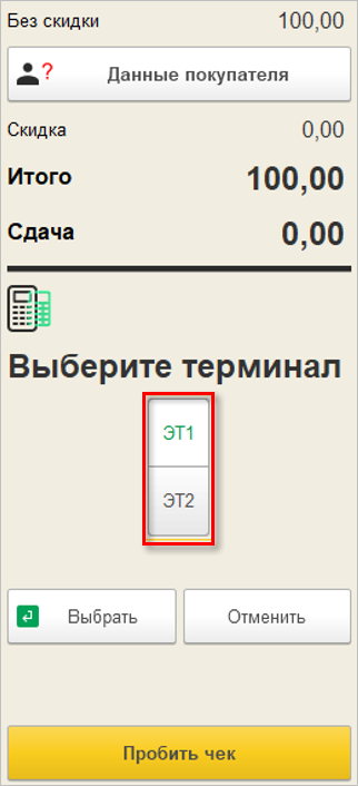 Если подключено несколько терминалов, которые поддерживают данную операцию, то кассиру потребуется выбрать нужный.