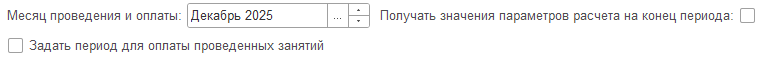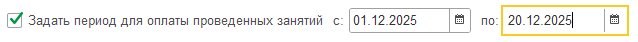 А можно по новому - задать произвольный период для оплаты проведенных занятий, установив соответствующий флаг. При этом поле выбора месяца становится бесполезным и скрывается, но появляются поля ввода границ периода: