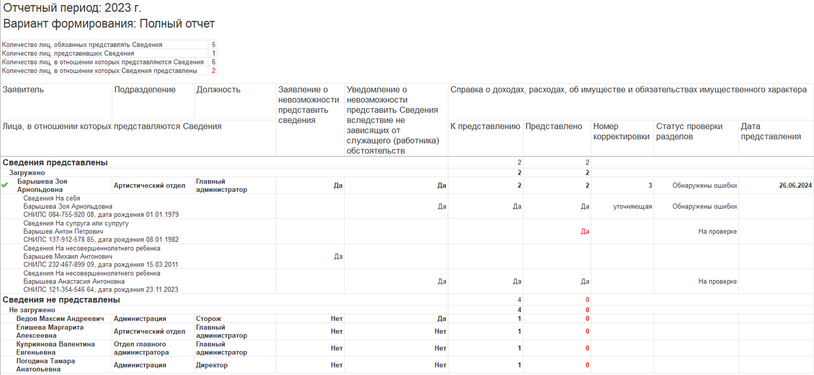 • Развернутая информация по справкам в разрезе сотрудников и их родственников