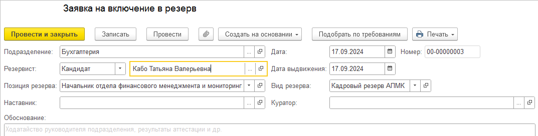 В остальных случаях – используется документ "Включение в кадровый резерв".