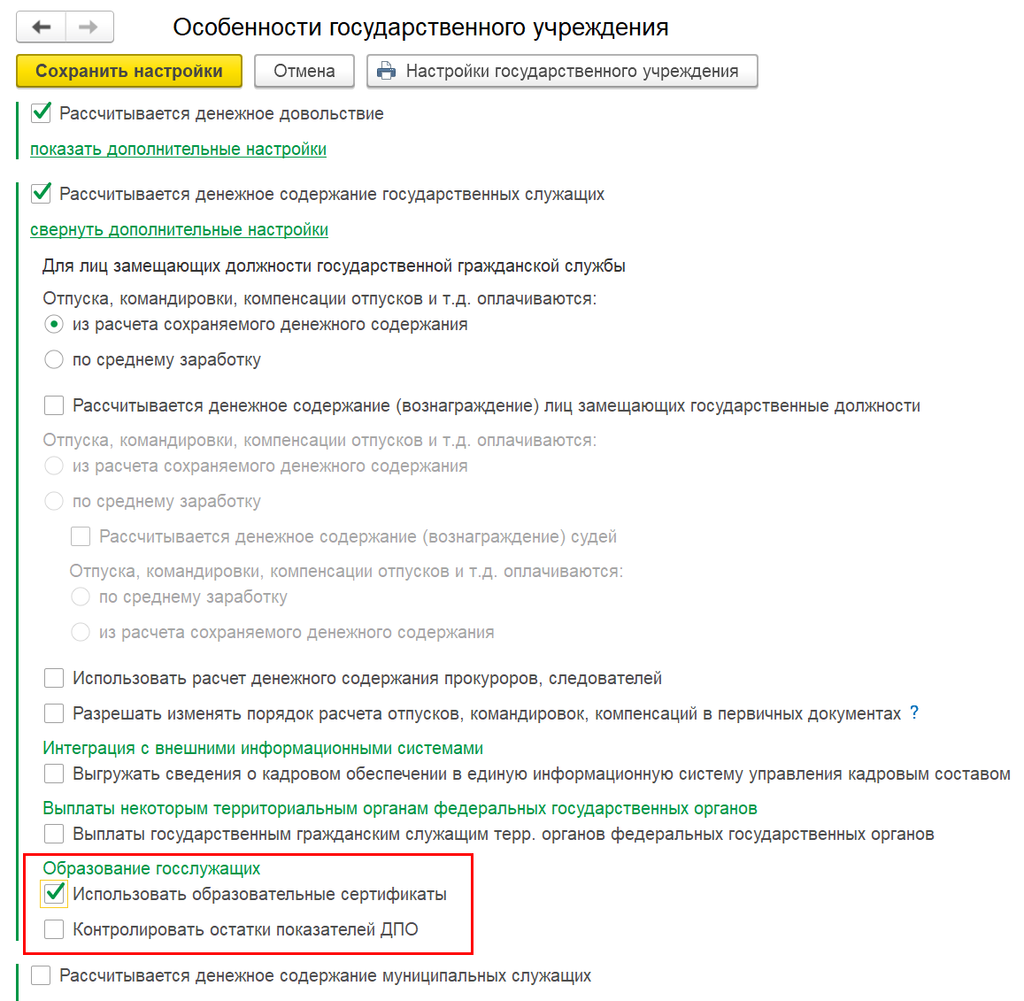 денежное содержание государственных служащих") добавлена настройка "Использовать
