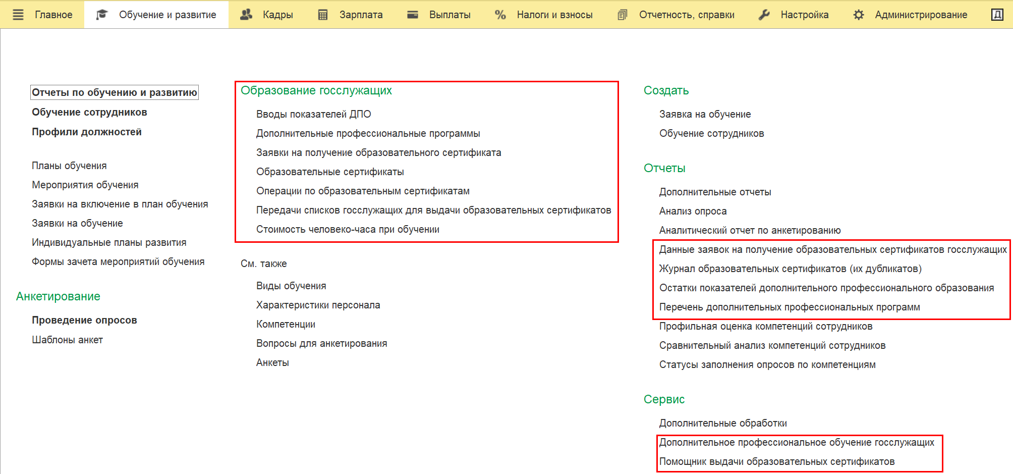 доступен подраздел "Образование госслужащих" и новые отчеты.