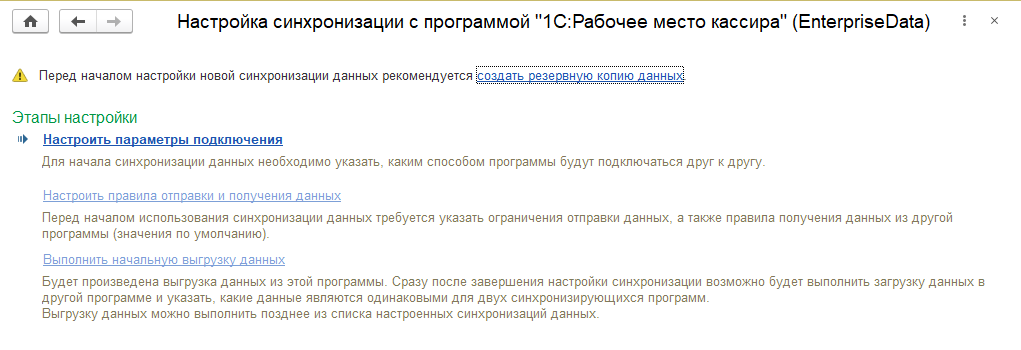 В помощнике подключения есть возможность полной выгрузки и догрузки данных вручную. Автоматически подсвечивается команда, которая наиболее подходит в текущей ситуации по рекомендации программы.