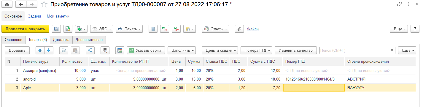 Подробная информация о составе номеров РНПТ комплекта хранится в табличной части справочника номера ГТД.