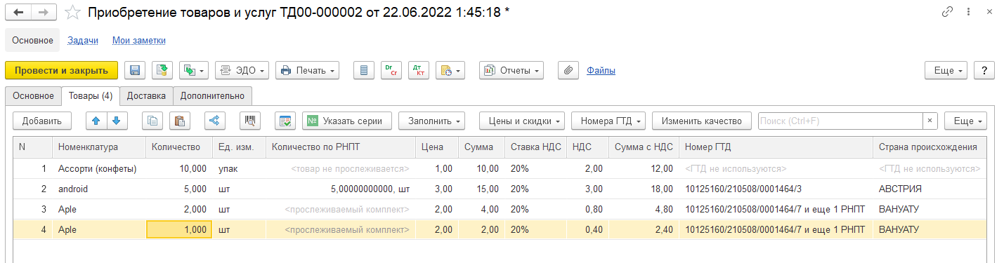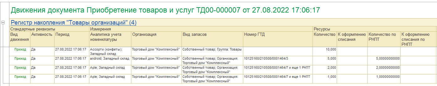 Учет прослеживаемых комплектов осуществляется по аналогии с непрослеживаемыми товарами, только с разницей в том, что в учетных регистрах отражается информация о номерах ГТД комплектов.