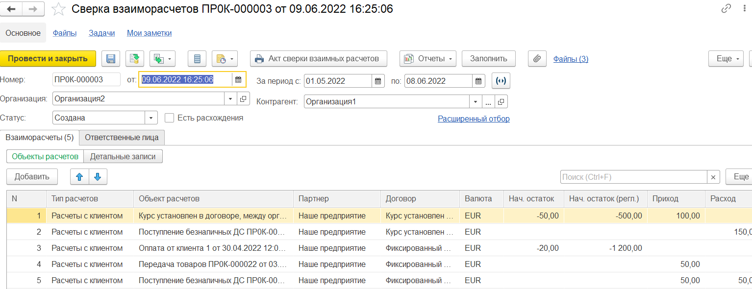 В итоге будут созданы следующие прослеживаемые комплекты: