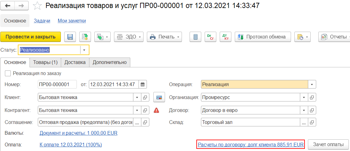 В случае получения статуса оплаты существующего QR-кода оплаты поступает сообщение об ошибке с кодом ошибки «УжеОплачен» и в документе заполняются данные по оплате (документ оплачен) на данном этапе.