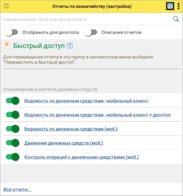 Просмотр отчетов в автономном режиме доступен в разделе Главное – Все отчеты.