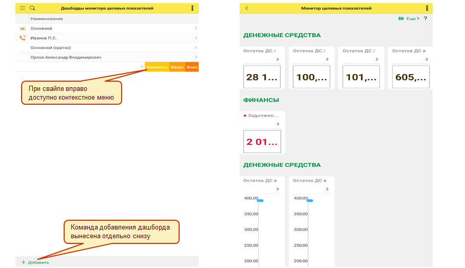 Реализован функционал по просмотру стандартных отчетов и отчета Монитор целевых показателей в мобильном клиенте в автономном режиме.