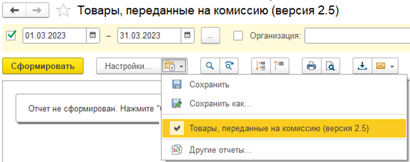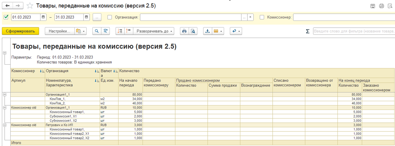 Отчет предназначен для версии комиссионной продажи 11.5.