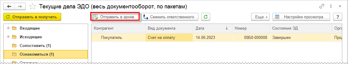 Документы, по которым завершен документооборот после ознакомления документ можно отправить в архив.