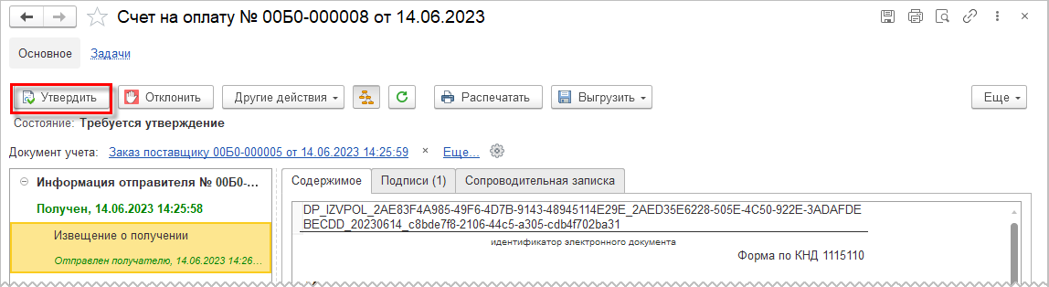 Полученный электронный счет на оплату требуется утвердить одним из следующих способов: