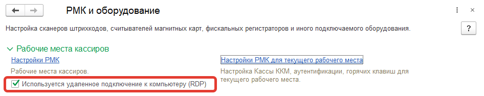 В панели администрирования НСИ и администрирование - Администрирование - РМК и оборудование есть возможность указать, что сеанс используется в RDP.