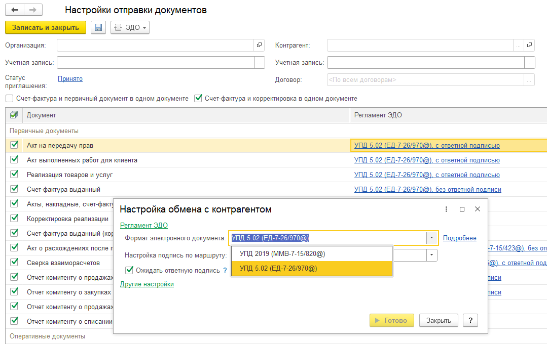 Поддержан формат УПД 5.02.1 (приказ ЕД-7-26/970).