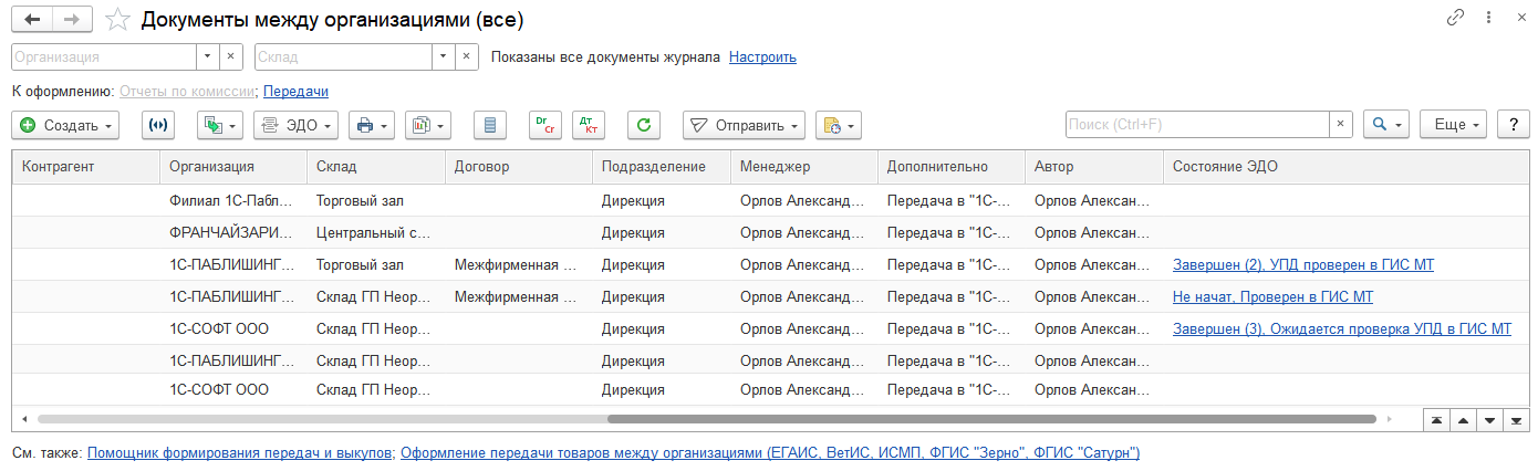 ■ Передача товаров между организациями