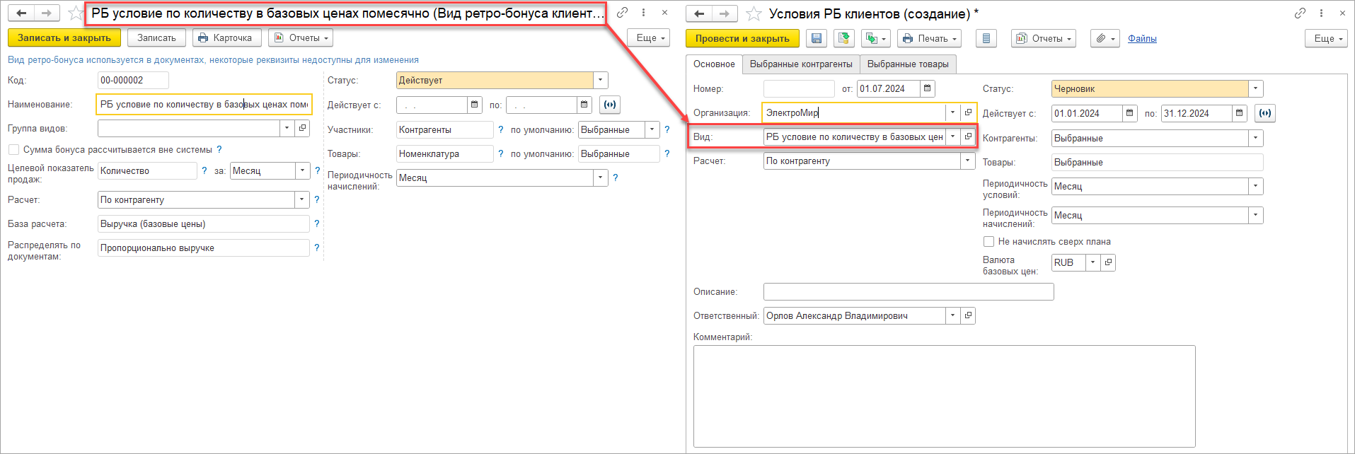 Продажи товаров на торговой площадке отражаются документом Реализация товаров и услуг. Контрагентом выступает конечный покупатель, в частности предопределённый элемент Розничный покупатель, или иной партнер и контрагент, указанный в настройках