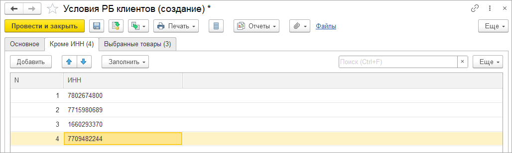 В документах, поддерживающих указание сведений о номерах ГТД/РНПТ, введено ограничение на указание значений справочника по типу в зависимости от учетных настроек номенклатуры типа «Товар» и «Многооборотная тара»: