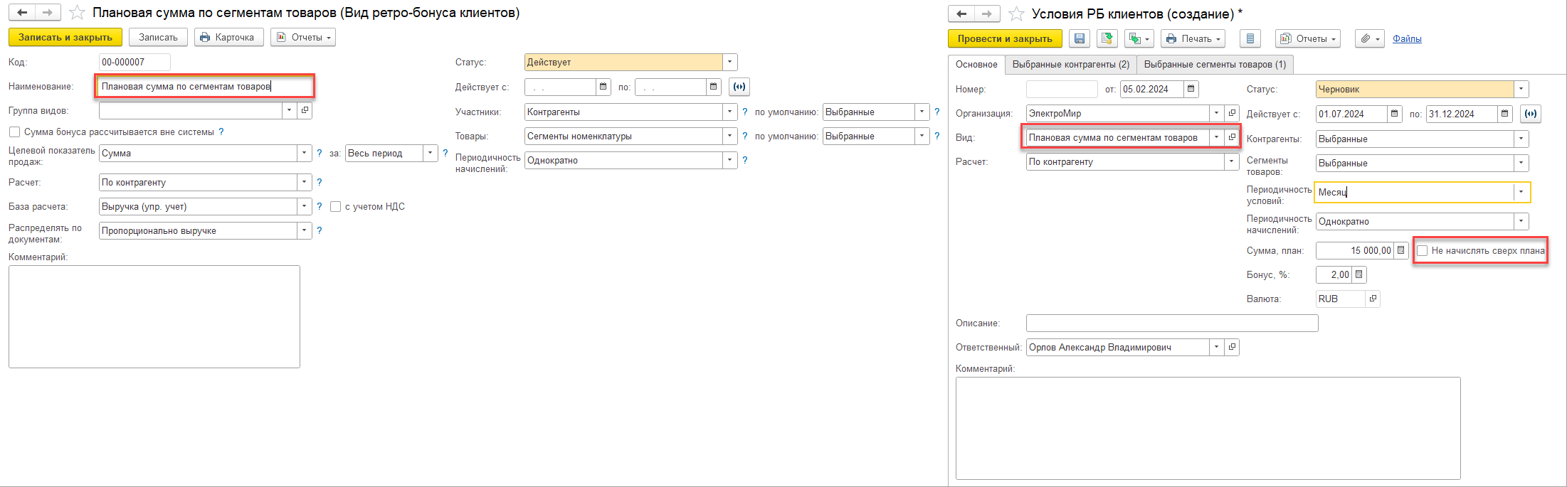 При отражении розничных продаж в рамках интеграции основной учетной системы с 1С:РМК при применении патентной системы налогообложения информация по КВПД передается в 1С:РМК. Если КВПД номенклатуры соответствует КВПД патента, то номенклатура будет выделена в фискальный чек по патенту, иначе номенклатура будет выделена в чек по УСН. Данные о продажах загружаются из 1С:РМК в основную учетную систему в разрезе примененной системы налогообложения.