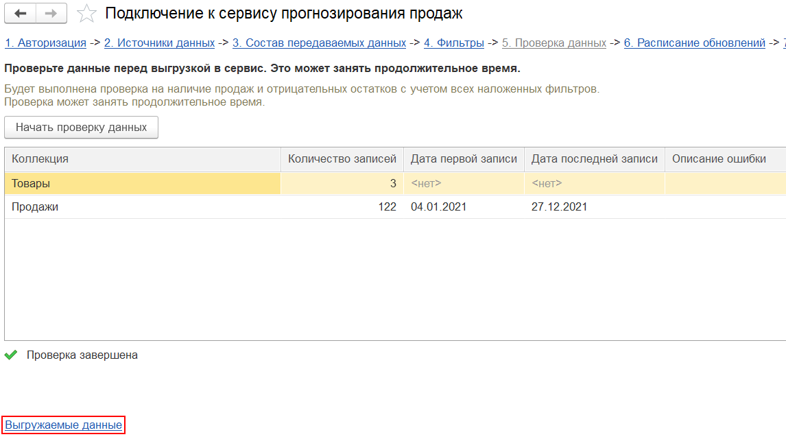 Из простого и из расширенного режимов работы помощника подключения доступен переход к отчету по выгружаемым данным.