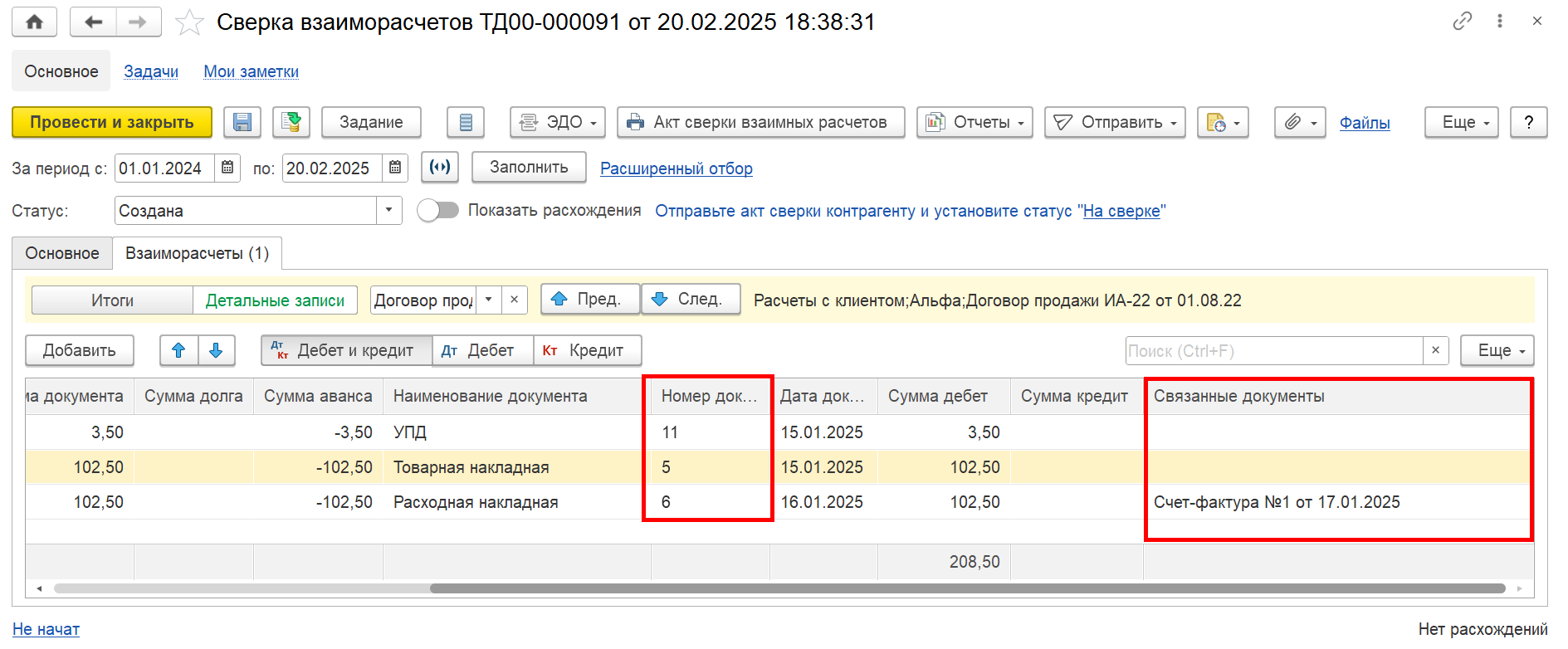 При настроенном ЭДО в документе реализации выводятся меню команд ЭДО и состояние документооборота, в нижней части документа отображается ссылка ЭДО не начат.