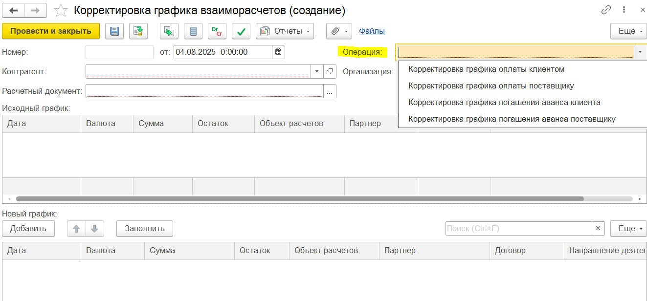 Документ Корректировка графика взаиморасчетов можно оформить: