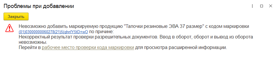 При создании разрешения на отгрузку открывается диалоговое окно и после подтверждения запускается предварительная проверка МОДов, статусов кодов маркировки и других реквизитов.