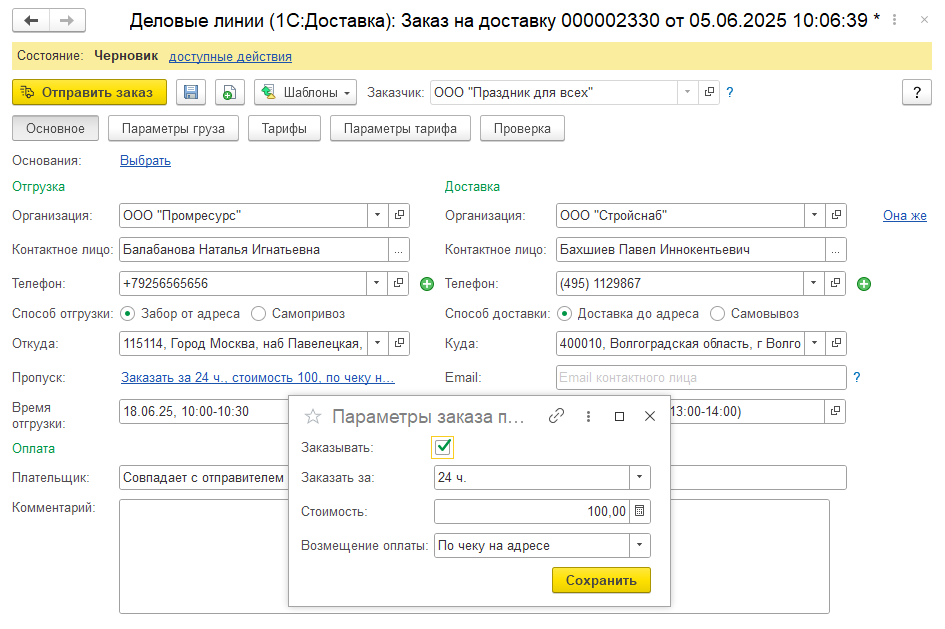 Фиксация времени отгрузки/доставки влияет на стоимость перевозки.